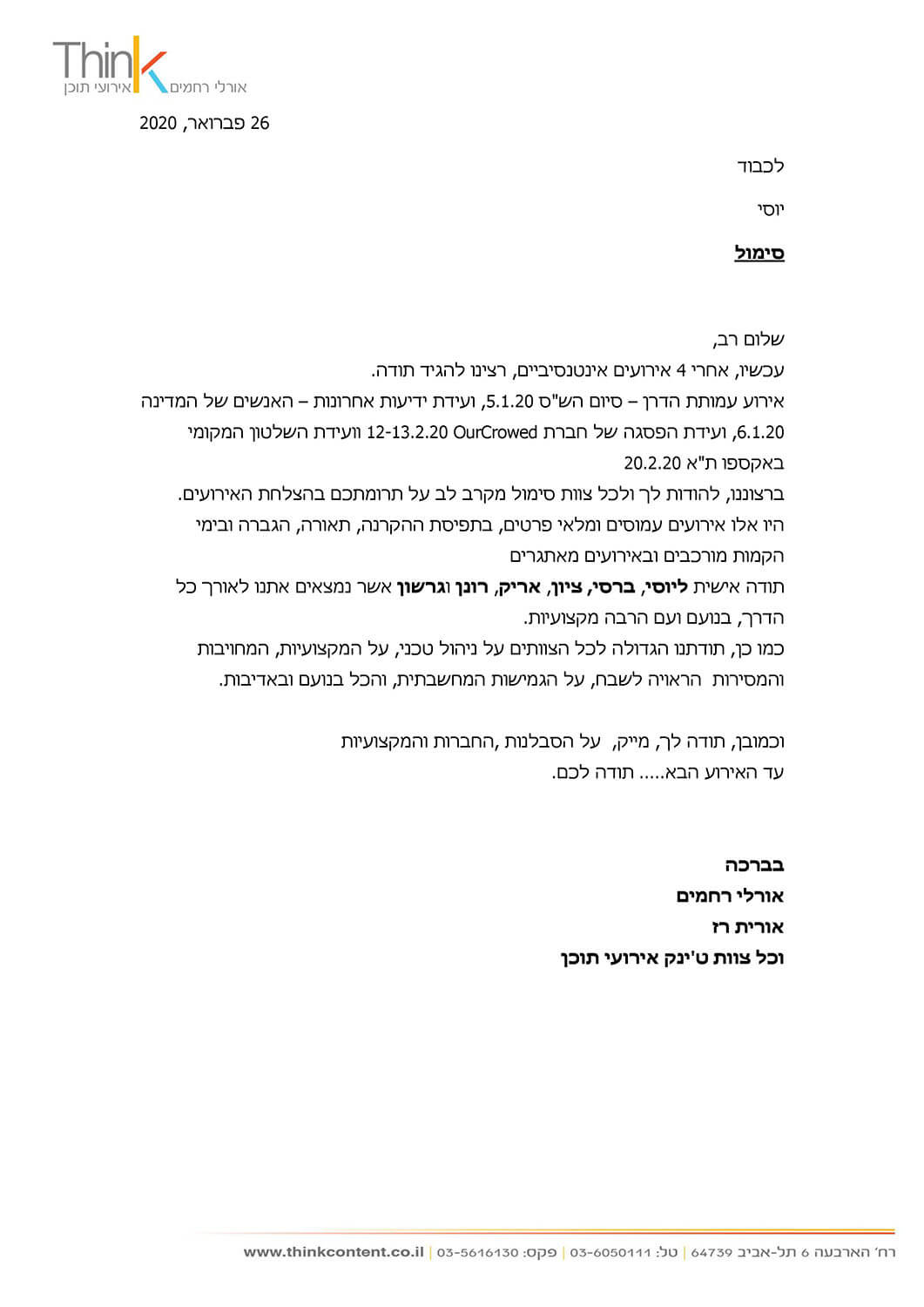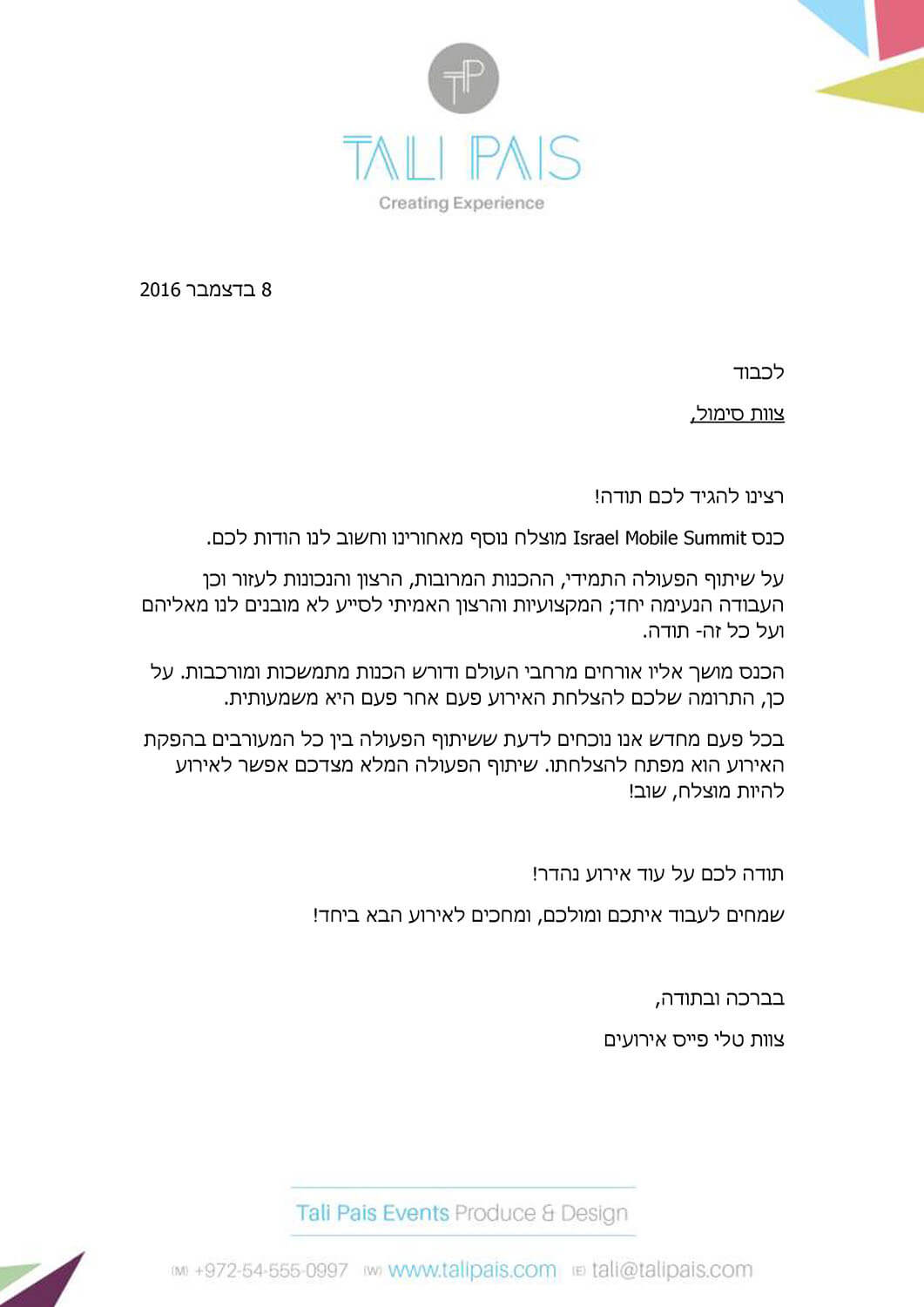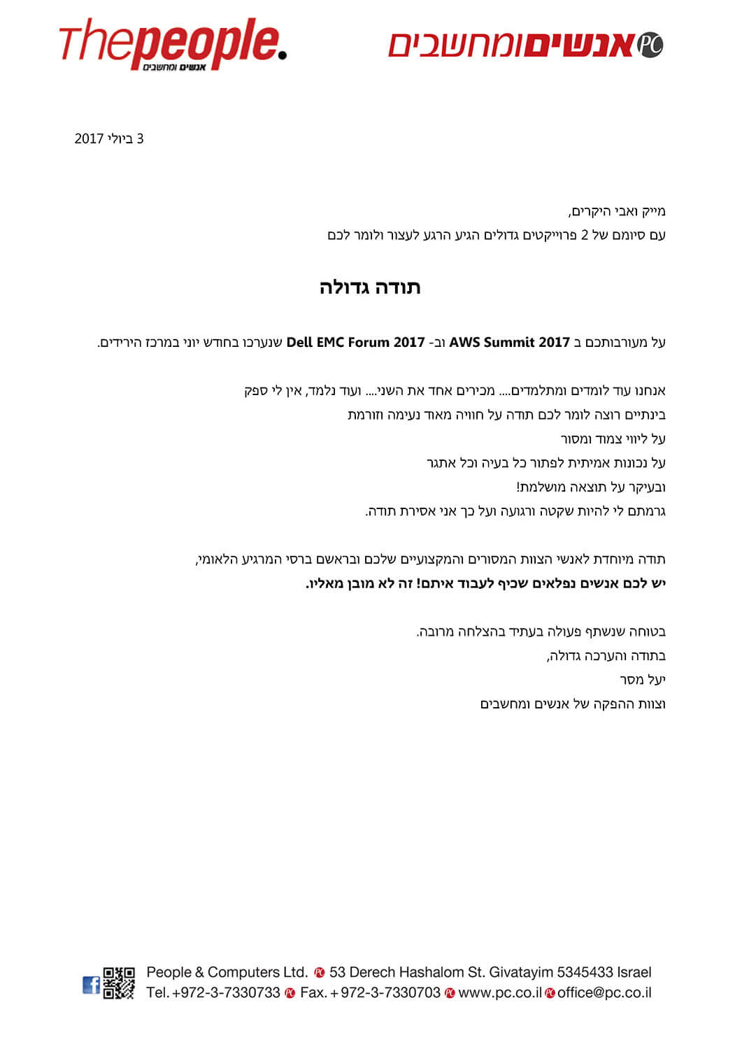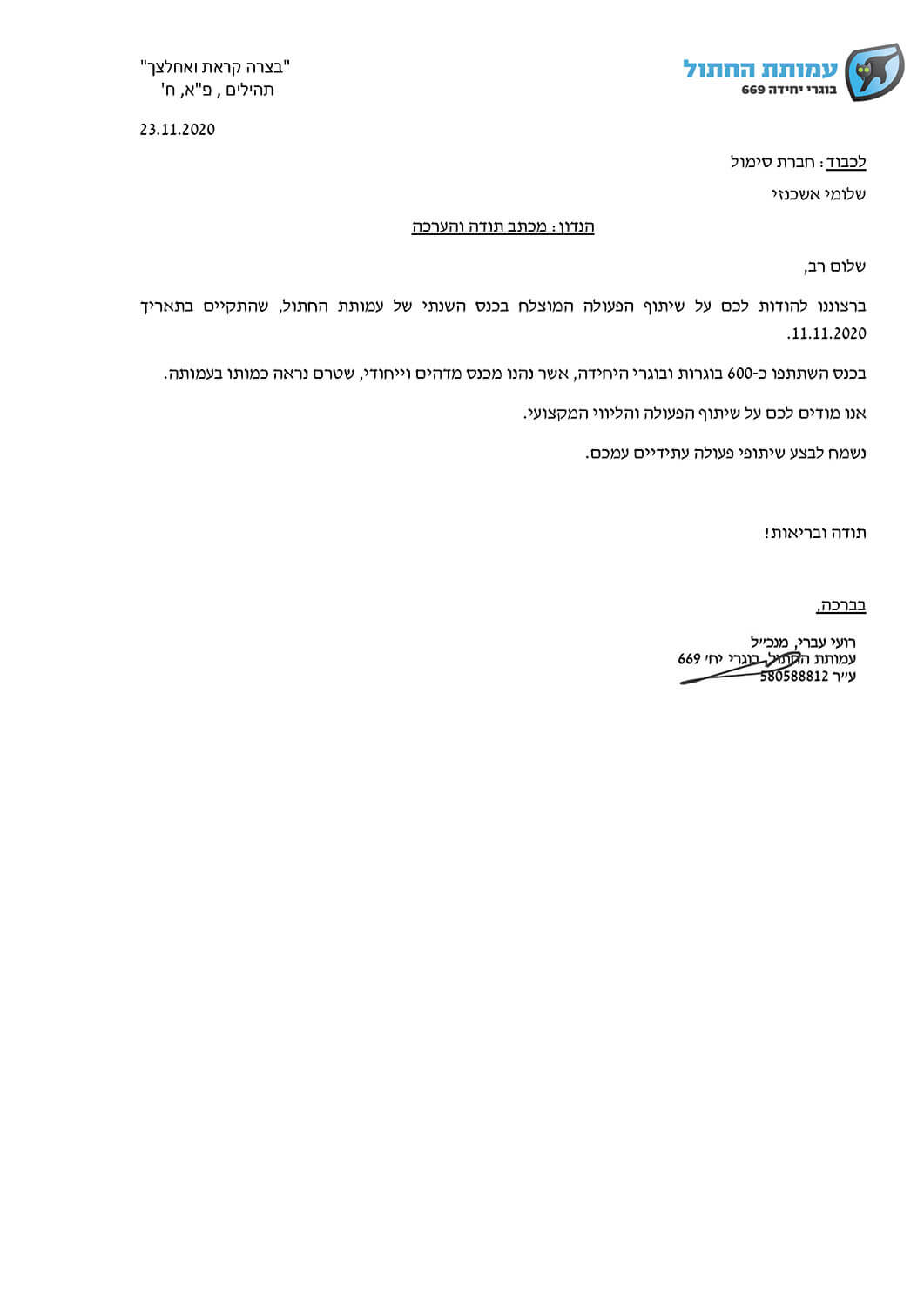 מכתבי תודה